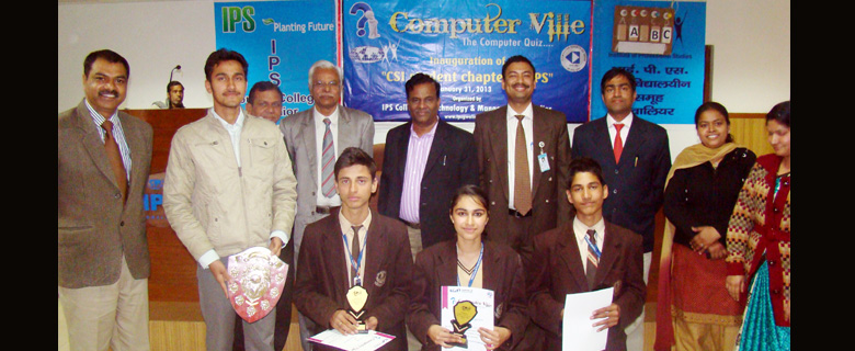 Computer Society of India Gwalior Chapter has been organizing computer quiz competition for the School children for the last 18 Years. In the year 2013 we have already organized “Computer Ville”- A Computer Quiz which was a great success. This year too the entire programme will be organized at IPS College of Technology & Management, Shivpuri Link Road, Gwalior by “CSI-IPSCTM Gwalior Student Branch” in the Department of Computer Science and Engineering / Information Technology. The aim of this Computer Ville is to spread awareness among students of the Gwalior Chambal region about the new technology in computer application and to develop mastering skills in IT world. The main objective of this quiz is to inculcate the efficiency and proficiency in computers. We want to prepare students for the future digitalization, provide current information on wider access and to support collaboration.
